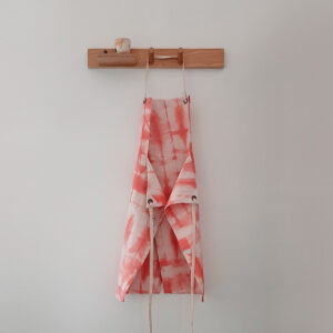 Con bolsillos para poner herramientas, pinceles o tu celular. Largas tiras de algodón para atar a la cintura y el cuello. Realizado en tela Tusor prelavado, 100% algodón.
