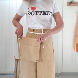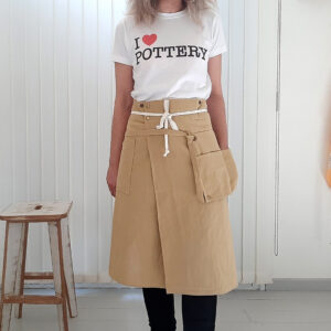 Diseñamos y creamos este hermoso delantal con su frente abierto para protegerte de la arcilla en el torno. Exclusivo diseño multifunción que permite desmontar la pechera y usarla cruzada a la cadera. Modelo unisex, muy práctico también para jardinería, tatuadores, comerciantes, floristas y artistas.
