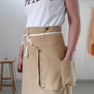 Viene con su pechera desmontable, 2 bolsillos multifuncionales (para herramientas, pinceles o tu teléfono) y largas tiras de algodón para atarlo.