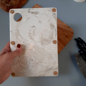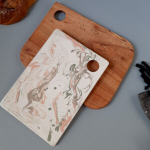 Versátil y única tablita de cerámica hecha a mano con arcillas coloreadas marmoladas, su forma simple da lugar a que se luzca el efecto de la mezcla fluida de las arcillas coloreadas, el color es dado por arcillas y no por esmaltes.